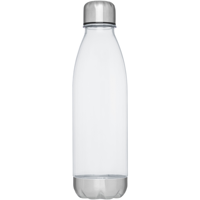 Single-walled water bottle in durable material with screw-on lid. Shatter, stain, and odour resistant. Features a stainless steel lid and bottom. BPA free. Volume capacity is 685 ml.