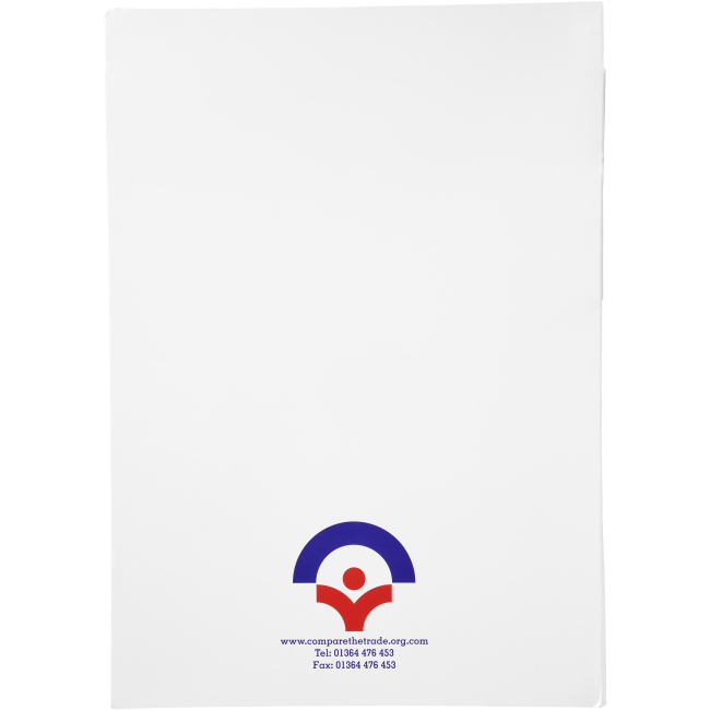 Essential conference pack A4. Includes an A4 notepad with 50 sheets (80g/m2) blank paper and a calypso pen in the spine area. The conference pack has a hard cover (350g/m2). Full colour decoration possible on both sides of the cover, as well as on each sheet.