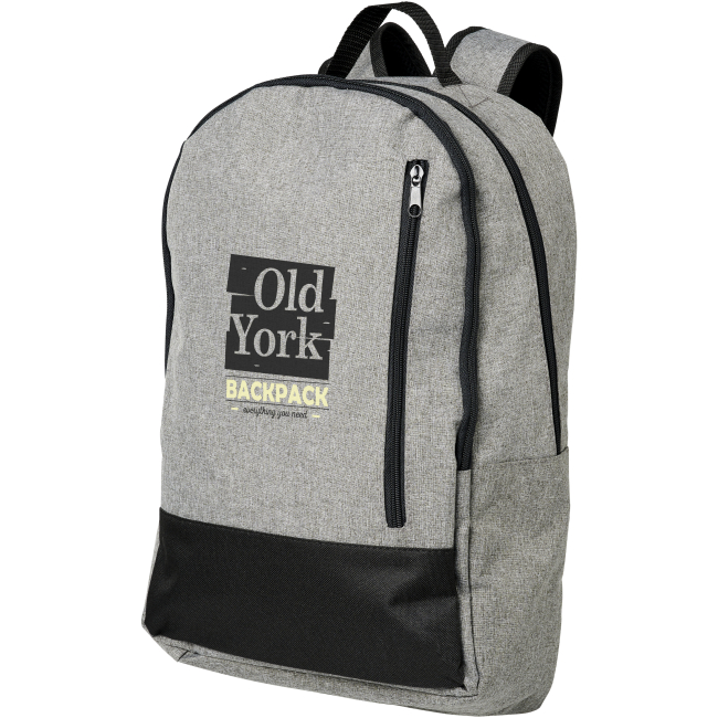 The zippered main compartment contains a 15" laptop sleeve, and the vertical front zipper provides easy access to essentials. There may be minor variations in the colour of the actual product due to the nature of the fabric dyes, weaves, and printing.