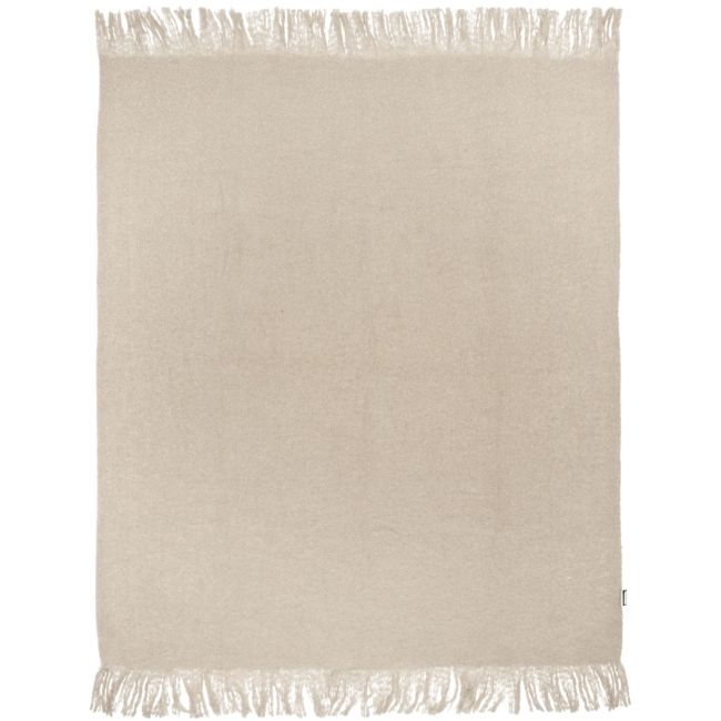 Ultra-soft GRS certified RPET mohair blanket, wrapped with a 190T RPET ribbon. Packed in a recycled polybag. Fringes length: 10 cm on each side. Ribbon size: 72 cm x 4 cm.