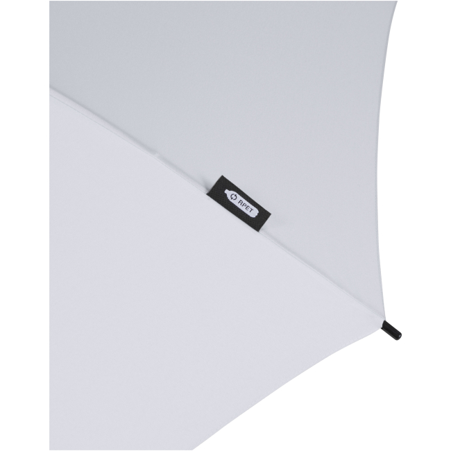23” automatic opening umbrella with a recycled PET pongee polyester canopy. It has a sturdy metal shaft, fiber glass frame, and a comfortable EVA handle with colour matching end. Large print area on each of the panels.