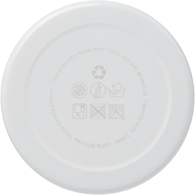 Staying hydrated at all times is possible with this durable yet lightweight 770 ml water bottle made from RCS certified recycled aluminium. It is the perfect companion while exercising, on day trips or at the office. The single wall Oregon bottle has a twist-on lid and offers plenty of space to add any kind of logo. Clip the attached carabiner (not suitable for climbing) securely to a bag to avoid losing it. BPA Free and tested and approved under German Food Safe Legislation (LFGB) and for phthalates content under REACH. The 100% recycled aluminium makes up for 87% of the bottle, and the remaining part is plastic.