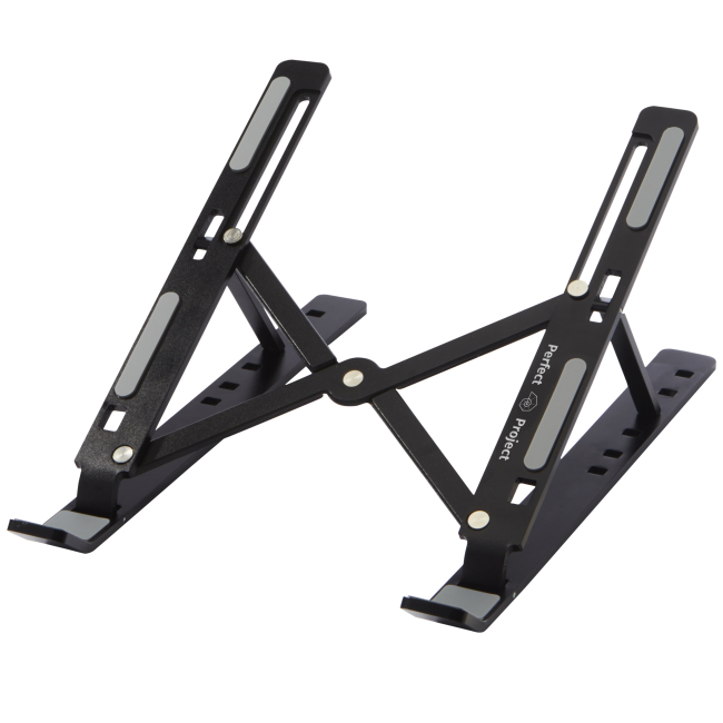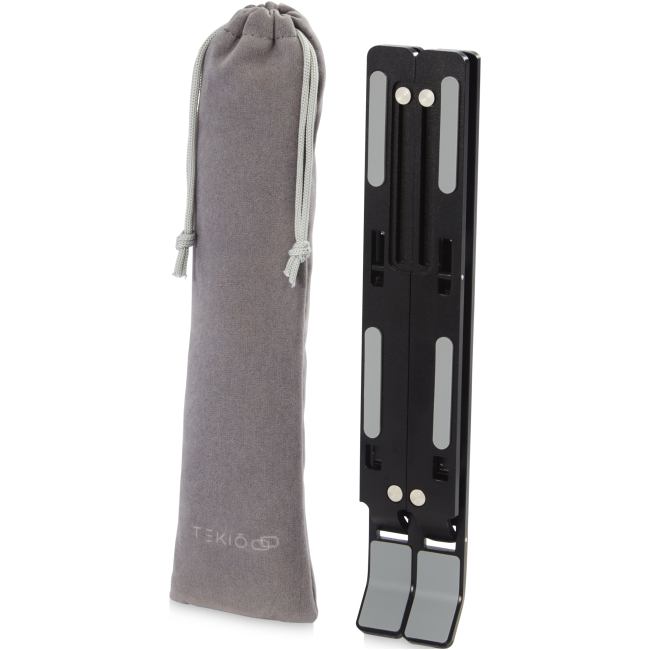 Universal, compact and foldable laptop stand made of aluminium alloy. The stand can be adjusted to 7 different angles for optimal ergonomic posture. Folding the stand in and out is very easy and can be done in seconds. The bottom has rubber strips to prevent it from moving. Comes with a pouch for easy carrying. Delivered in a premium kraft paper box with a colourful sticker.