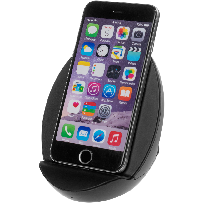 This Bluetooth® S10 multi-function wireless charger, speaker, and phone stand is a unique product. Easily connect your smartphone by placing it vertically or horizontally on the pad. The compact size also makes it easy to carry around. Playtime is about six hours and charging time is about 1 hour. Includes a micro-USB charging cable, user manual, and anti-slip strip.