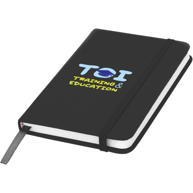 Besides being an office essential, the Spectrum notebook is also a great item to promote any brand. The hardcover notebook consists of cardboard covered with a soft touch PVC cover. The 96 lined responsibly sourced sheets of 60 g/m² are ideal for jotting down quick ideas or long notes. The A6 reference size is practical, as it fits smoothly into the average bag and is easy to hold. The ribbon of the bookmark and the elastic closure are in the same colour.