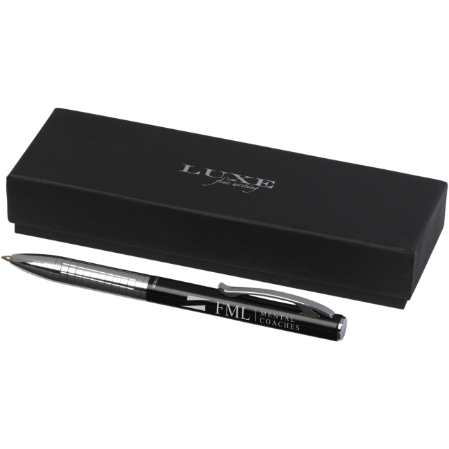 Toque elegante da caneta esferográfica com mecanismo de torção. Incluído uma recarga de alta qualidade e vem embalada numa caixa de presente "LUXE".