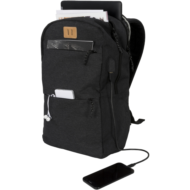 Possui um compartimento principal aberto com uma capa para laptop de 15", dois compartimentos frontais com fecho, puxadores de fecho intercambiáveis e forro interior impresso. Vem com uma porta USB e cabo para fácil carregamento em movimento. Pode haver pequenas variações na cor do produto real devido à natureza dos corantes dos tecidos, aos tecidos e à estampagem.